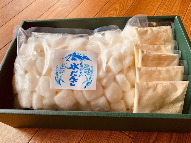 ☆『水だんご』☆ 【2026年4月1日〜4月3日発送予約】 ※※重要1※※ 発送不可の地域あり。 【発送不可地域】:海外 ※※重要2※※ お届け日・時間指定不可 ①現在、ご注文を多く頂いており、ご注文順に順番に発送いたしております。 ②商品お届け日指定・時間の指定は不可となります。ご了承ください。 ③商品着日は火曜日〜日曜日になります。(日曜日は定休日のため、月曜着は不可) ※商品名の【発送予約期間】を必ずご確認ください。 ........................................................................... 『水だんご』は富山県産コシヒカリの米粉、北海道産片栗粉、そして美味しいお水で作ったお団子です。 団子の周りに打ち粉がついており、その打ち粉を流水で流して団子の水を切り、特製の青大豆きな粉をかけて召し上がっていただく… この食べ方から水だんごと命名されたと言われております。 水が美味しいとされる、富山県新川地区だからこそ生まれた伝統のあるお団子です。 米粉と片栗粉から作られる水だんごは、独特なツルっとした口当たりと、もちっとした食感。 付属の少しお塩の入った、甘しょっぱい青大豆きな粉をかけた水だんごはやみつきになる逸品。 この水だんごを冷凍させ1kgパックにし、付属で青大豆きな粉をお付けした商品となります。 冷凍であれば長期保存可能で、水だんごを使った料理・お菓子など幅広くお使いいただけます。 冷凍水だんごの調理方法や、活用レシピ付きです♪ ◇ 【商品名】:水だんご(冷凍) 【原材料】:水だんご(富山県産米粉.北海道産片栗粉)、青きな粉(砂糖.富山県産青大豆.食塩) 【内容量】:水だんご1kg(約6パック分)、青大豆きな粉20g×5個 【賞味期限】:製造日より180日(賞味期限90日以上ある商品を発送) 【保存方法】:−18℃以下で保存 【栄養成分表示】(100gあたり):エネルギー158kcal、炭水化物34.3g、タンパク質2.7g、脂質1.1g、食塩相当量0.19g ◇ 【調理方法】:「茹でる」「煮込む」「焼く」の方法でお召し上がりいただけます。調理方法と活用レシピを同封いたします。 ※「常温解凍・冷蔵庫解凍・レンジ解凍」不可の商品となります。 ◇ 【販売期間】:通年販売 ◇ 【ギフト梱包・熨斗対応について】 ・ギフト梱包不可 ・熨斗は無料でご対応可能 ・ご希望の方は注文時の備考欄に「熨斗希望」とご記入いただき、熨斗の種類もご記入くださいませ ◇ 【保存・配送方法】:冷凍配送となりますので、届きましたら冷凍保管をお願いいたします。 ◇ 【送料】:送料込みの価格となっております。(全国一律) ◇ 【商品の日時指定発送】: ①ご注文を頂いた方から順番に発送いたしております。 ②商品お届け日・時間の指定は承っておりません。ご了承ください。 ③商品着日は火曜日〜日曜日になります。(日曜日は定休日のため、月曜着は不可) ※商品名の【発送予約期間】を必ずご確認ください。 ◇ 【付属のきな粉に関して】:付属の青大豆きな粉は着色料不使用の自然な青緑色でございます。太陽光や紫外線に触れることで、自然な青緑色が退色し黄色(もしくは白みがかった黄色)に変化いたします。退色しても食味には影響ございませんので、安心してお召し上がりくださいませ。
