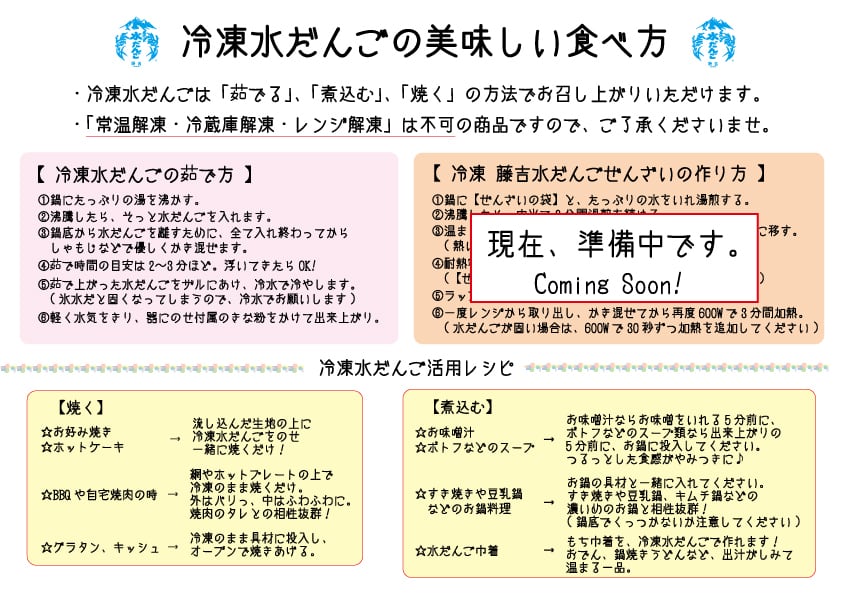 冷凍水だんごの調理方法や、活用レシピ付きです♪